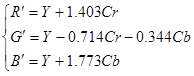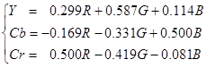 (1)各 Y,Cb,Cr 信号をモノクローム画像としてディスプレイに表示させなさい.ただし,信号値をディスプレイに表示する際,ダイナミックレンジが0から255となるように変換しなさい.