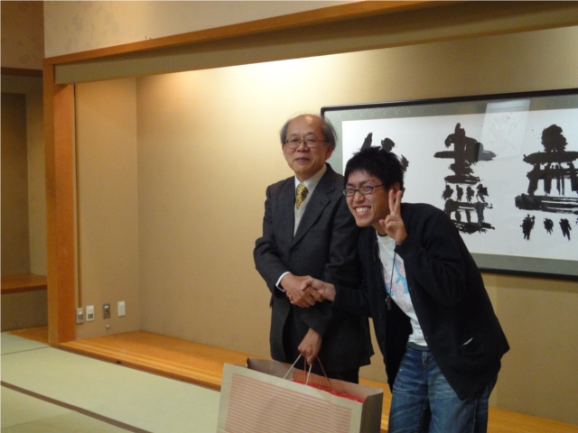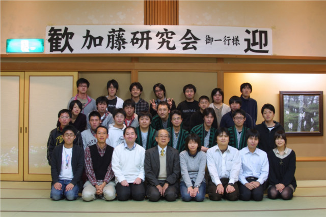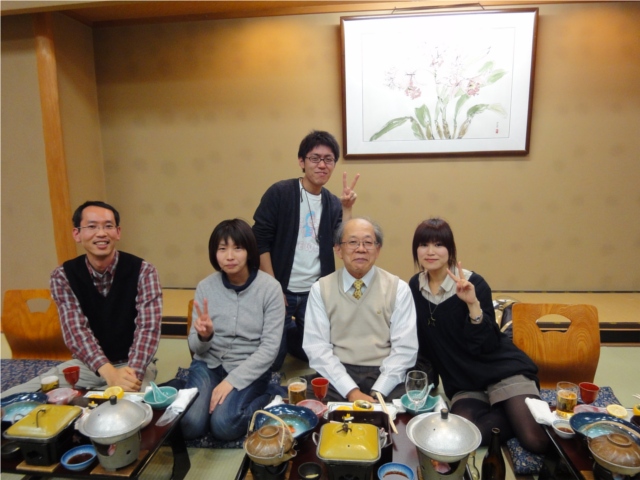 | 加藤先生と記念撮影 | 息がぴったりの1枚 | 楽しい宴会の1コマ |