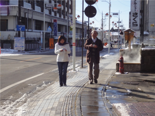 | 朝の散歩をする先生方 | 雪の残る駅前北通り | 加藤先生とふれあい橋の鬼 |
