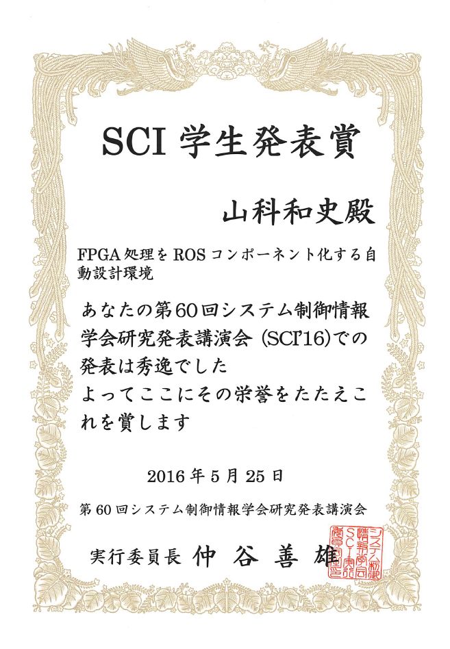 この度はSCI’16において学生発表賞を受賞することができ大変光栄に思います。